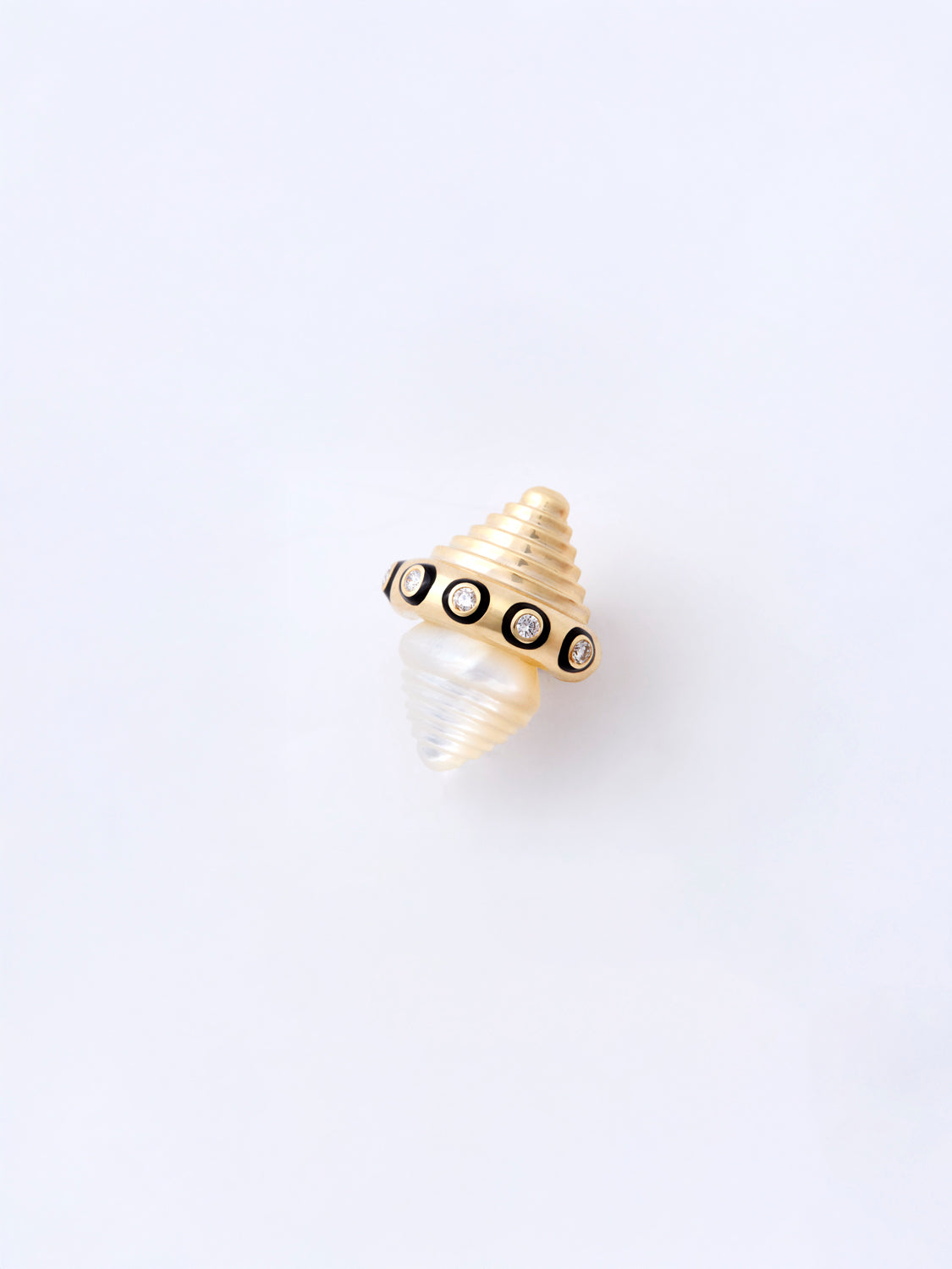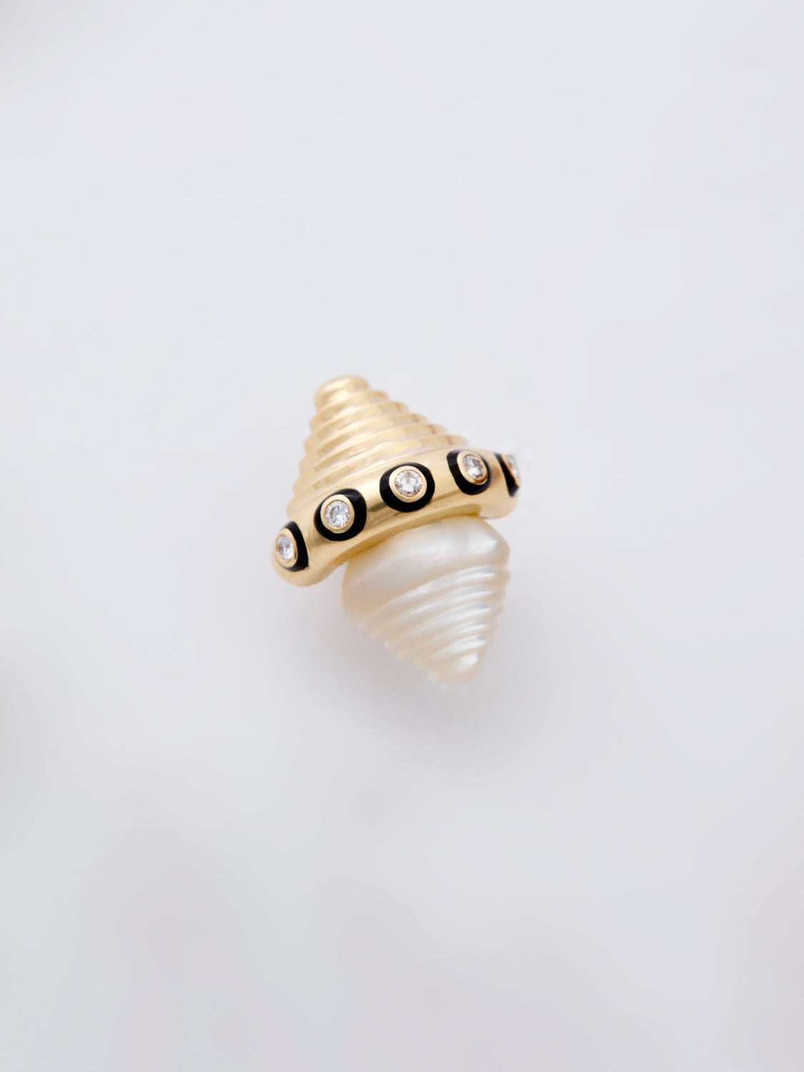 18k yellow gold,0,52 ct diamond,black enamel and mother-of-pearl